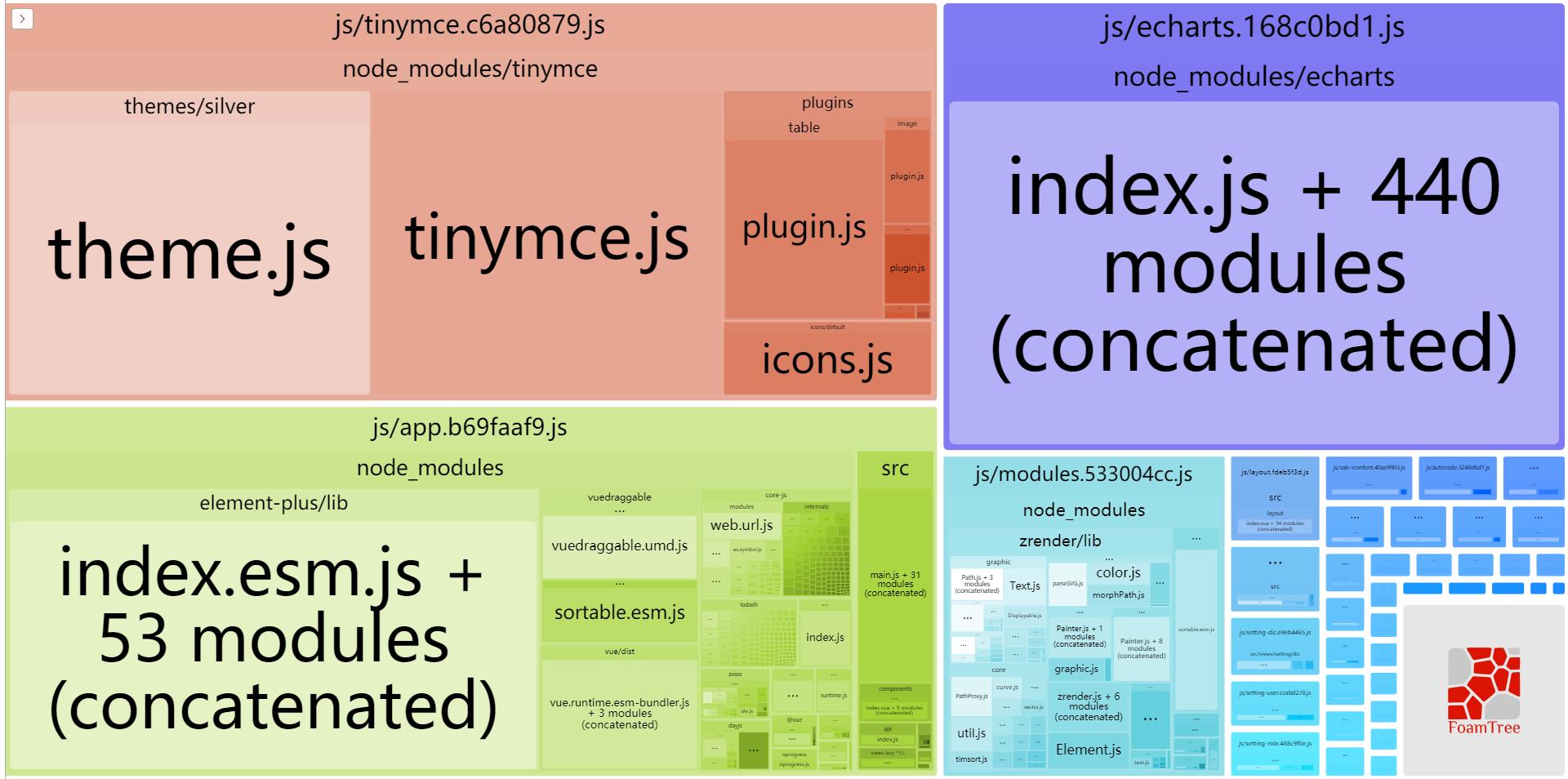 在打包完成后,将在 dist 根目录下生成report.html,可以查看各个模块的体积分析,从而决定是否需要抽离。